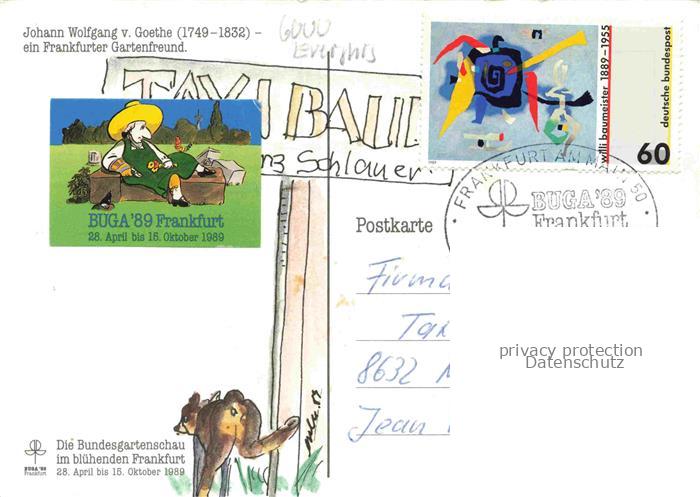74041186 alte Postkarte BUGA Bundesgartenschau Frankfurt Johan Wolfgang Goethe postalisch gelaufen Erhaltung siehe scans [SanaeD93] KatCode: 22100000000100