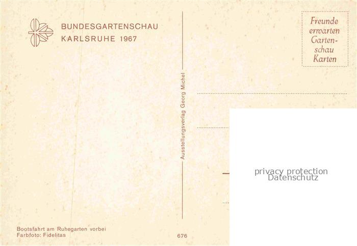 74052981 BUGA Bundesgartenschau Karlsruhe Bootsfahrt Ruhegarten postalisch nicht gelaufen Erhaltung siehe scans [IrynaD87] KatCode: 22100000000100