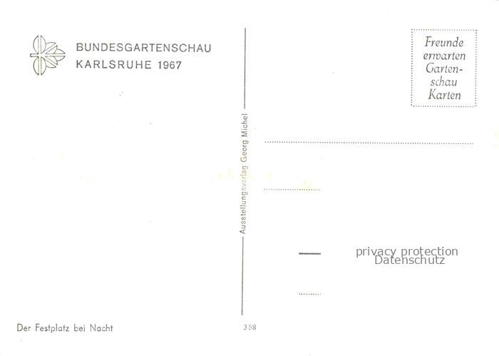 74052985 BUGA Bundesgartenschau Karlsruhe Festplatz bei Nacht postalisch nicht gelaufen Erhaltung siehe scans [IrynaD87] KatCode: 22100000000100