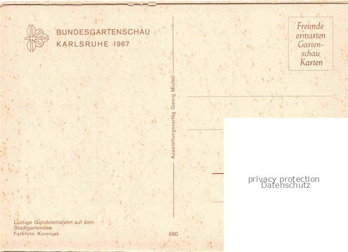 74054663 BUGA Bundesgartenschau Karlsruhe Gondolettafahrt Stadtgartensee postalisch nicht gelaufen Erhaltung siehe scans [SanaeD93] KatCode: 22100000000100