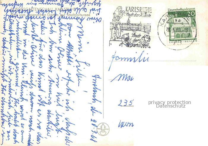 74056231 alte Postkarte BUGA Bundesgartenschau Karlsruhe Japangarten Stadtgartensee postalisch gelaufen Erhaltung siehe scans [SanaeD93] KatCode: 22100000000100