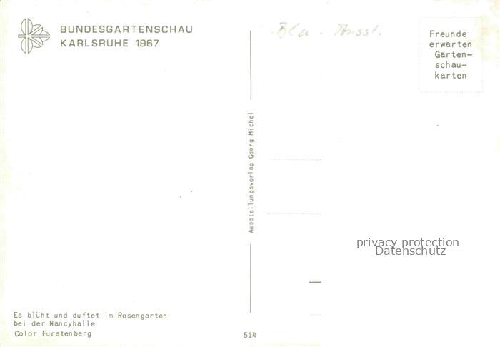 74054645 BUGA Bundesgartenschau Karlsruhe Nancyhalle Rosengarten postalisch nicht gelaufen Erhaltung siehe scans [SanaeD93] KatCode: 22100000000100