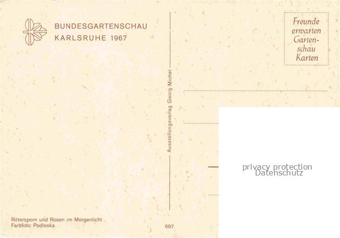 74055059 BUGA Bundesgartenschau Karlsruhe Rittersport Rosen Morgenlicht postalisch nicht gelaufen Erhaltung siehe scans [IrynaD87] KatCode: 22100000000100