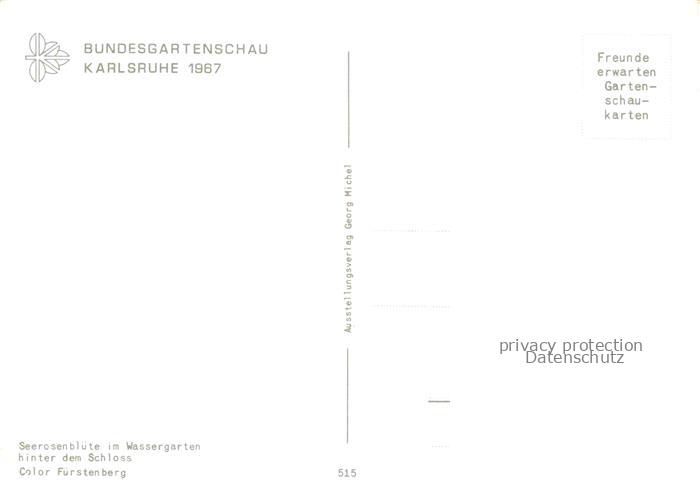 74054527 BUGA Bundesgartenschau Karlsruhe Seerosenbluete Wassergarten postalisch nicht gelaufen Erhaltung siehe scans [IrynaD87] KatCode: 22100000000100