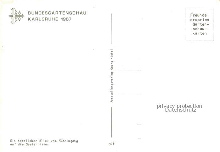 74052991 BUGA Bundesgartenschau Karlsruhe Suedeingang Seeterrassen postalisch nicht gelaufen Erhaltung siehe scans [IrynaD87] KatCode: 22100000000100