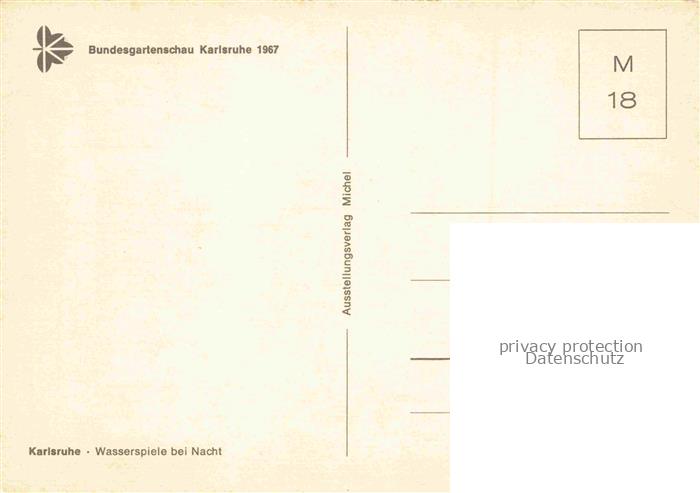 74055054 BUGA Bundesgartenschau Karlsruhe Wasserspiele bei Nacht postalisch nicht gelaufen Erhaltung siehe scans [IrynaD87] KatCode: 22100000000100