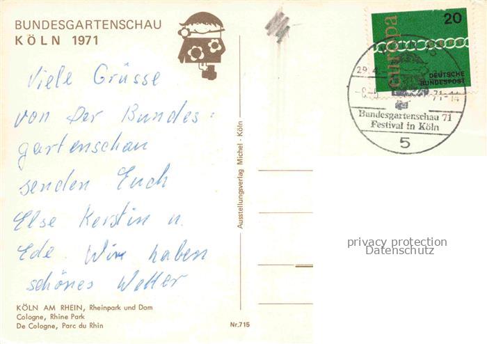 74054494 alte Postkarte BUGA Bundesgartenschau Koeln am Rhein Rheinpark Dom postalisch gelaufen Erhaltung siehe scans [IrynaD87] KatCode: 22100000000100