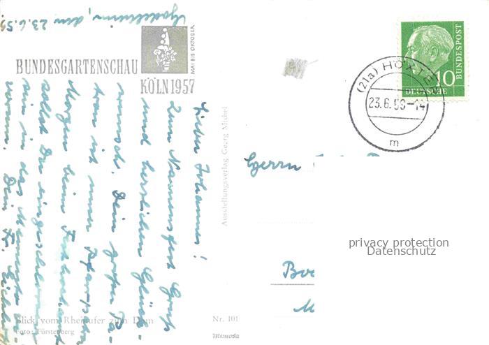 74059883 alte Postkarte BUGA Bundesgartenschau Koeln Rhein Ufer Dom postalisch gelaufen Erhaltung siehe scans [SanaeD93] KatCode: 22100000000100
