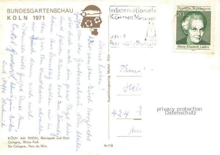74054585 alte Postkarte BUGA Bundesgartenschau Koeln Rheinpark Dom postalisch gelaufen Erhaltung siehe scans [IrynaD87] KatCode: 22100000000100