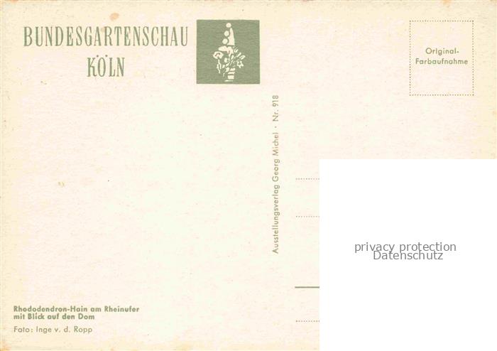 74052221 BUGA Bundesgartenschau Koeln Rhododendron Hain am Rheinufer Dom postalisch nicht gelaufen Erhaltung siehe scans [IrynaD87] KatCode: 22100000000100