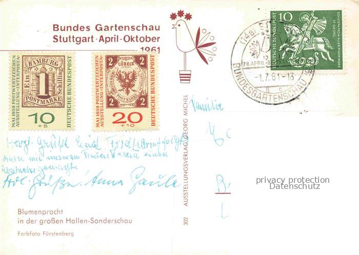 74060063 alte Postkarte BUGA Bundesgartenschau Stuttgart Blumenpracht Hallen Sonderschau postalisch gelaufen Erhaltung siehe scans [SanaeD93] KatCode: 22100000000100