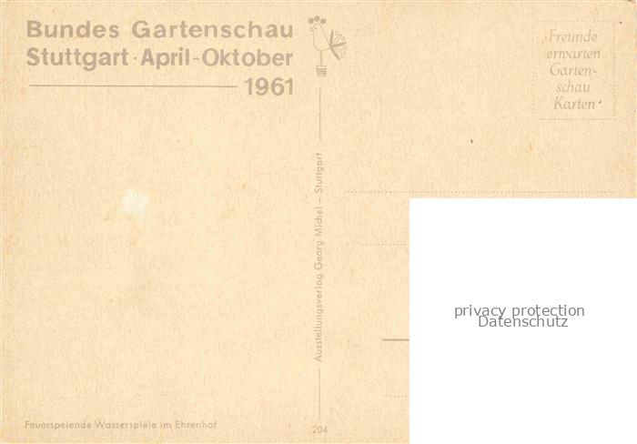 74053488 BUGA Bundesgartenschau Stuttgart Feuerspielende Wasserspiele Ehrenhof postalisch nicht gelaufen Erhaltung siehe scans [IrynaD87] KatCode: 22100000000100