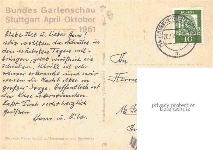 74056930 alte Postkarte BUGA Bundesgartenschau Stuttgart Rosen Schloss Theatersee postalisch gelaufen Erhaltung siehe scans [SanaeD93] KatCode: 22100000000100