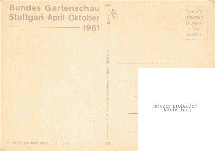 74053512 BUGA Bundesgartenschau Stuttgart Wasserspiel Haupteingang postalisch nicht gelaufen Erhaltung siehe scans [IrynaD87] KatCode: 22100000000100