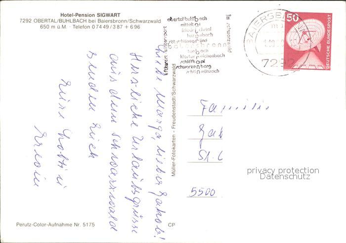 72227604 alte Postkarte Buhlbach Obertal Hotel-Pension Sigwart postalisch gelaufen Erhaltung siehe scans KatCode: 11110008237004