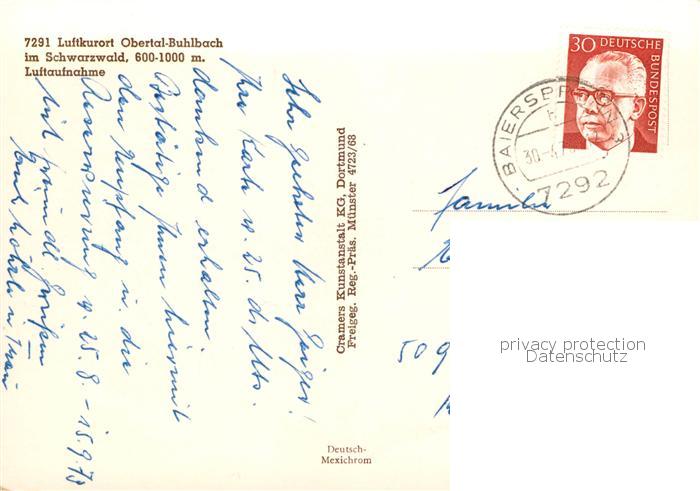 73792693 alte Postkarte Buhlbach Obertal Panorama Luftkurort im Schwarzwald postalisch gelaufen Fliegeraufnahme Erhaltung siehe scans [FriedD77] KatCode: 11110008237004