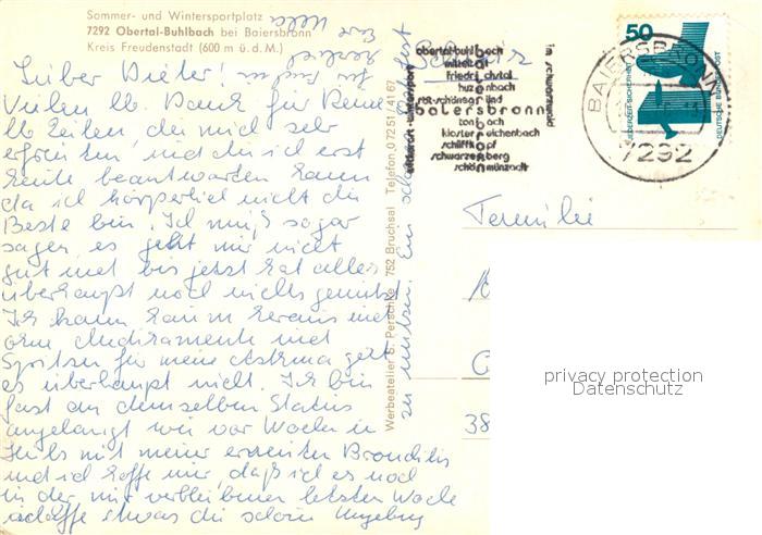 73312233 alte Postkarte Buhlbach Obertal postalisch gelaufen Erhaltung siehe scans [NatalD47] KatCode: 11110008237004