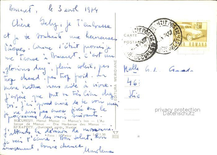 old postcard Bukarest Hanul Manuc postalisch gelaufen Erhaltung siehe scans [AndreD76 kv022box]