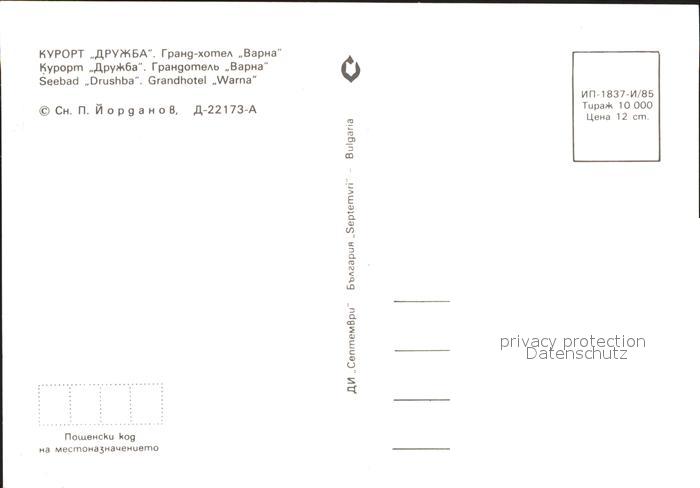 Bulgarien Druschba Grandhotel Warna postalisch nicht gelaufen Erhaltung siehe scans
