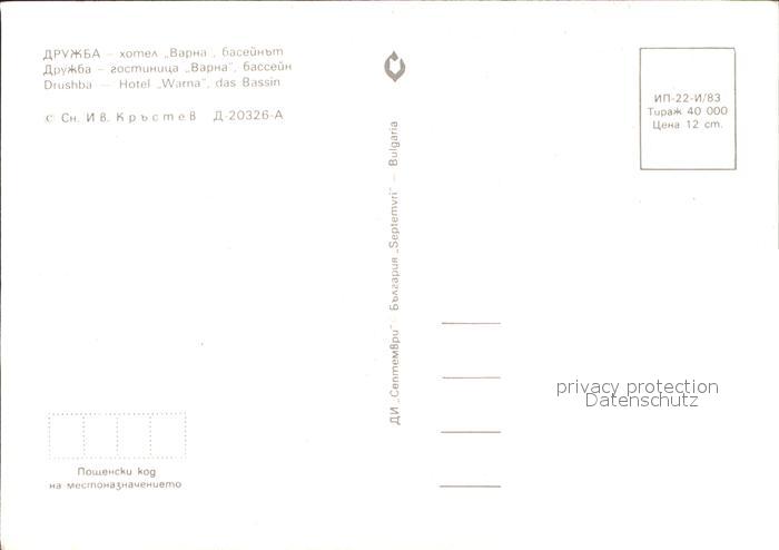Bulgarien Druschba Hotel Varna postalisch nicht gelaufen Erhaltung siehe scans