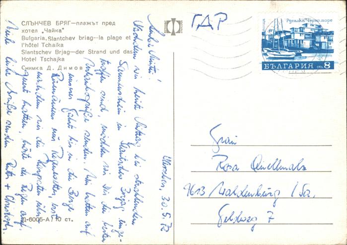 old postcard Bulgarien Hote Tschajka postalisch gelaufen Erhaltung siehe scans