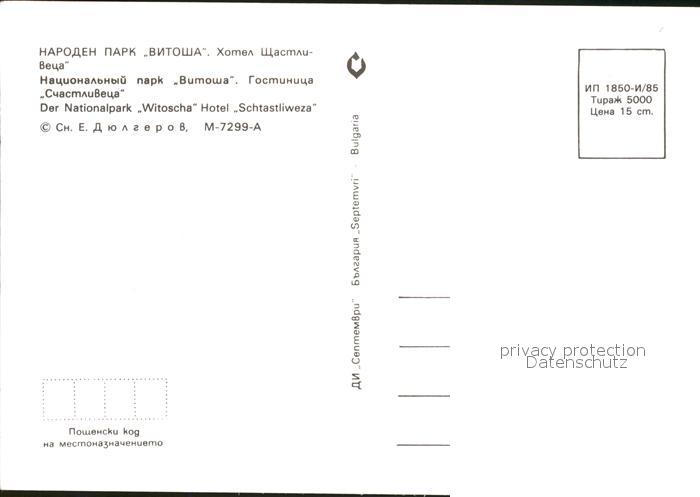 Bulgarien Hotel Schtastliweza Nationalpark Witoscha postalisch nicht gelaufen Erhaltung siehe scans