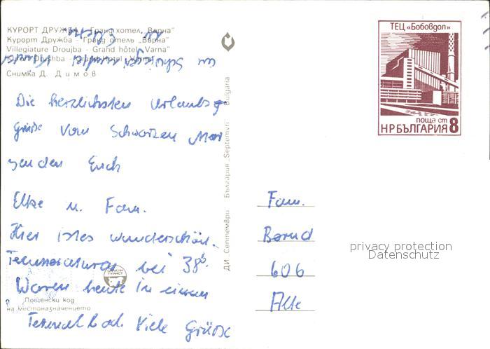 old postcard Bulgarien Kurort Drushba Grandhotel Varna postalisch gelaufen Erhaltung siehe scans