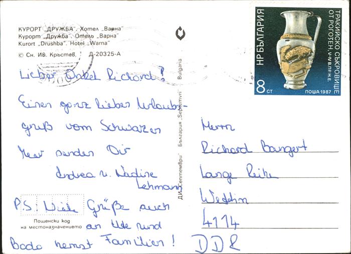 old postcard Bulgarien Kurort Drushba Hotel Warna postalisch gelaufen Erhaltung siehe scans