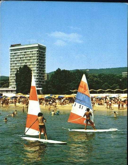 old postcard Bulgarien Meer Surfer postalisch gelaufen Erhaltung siehe scans