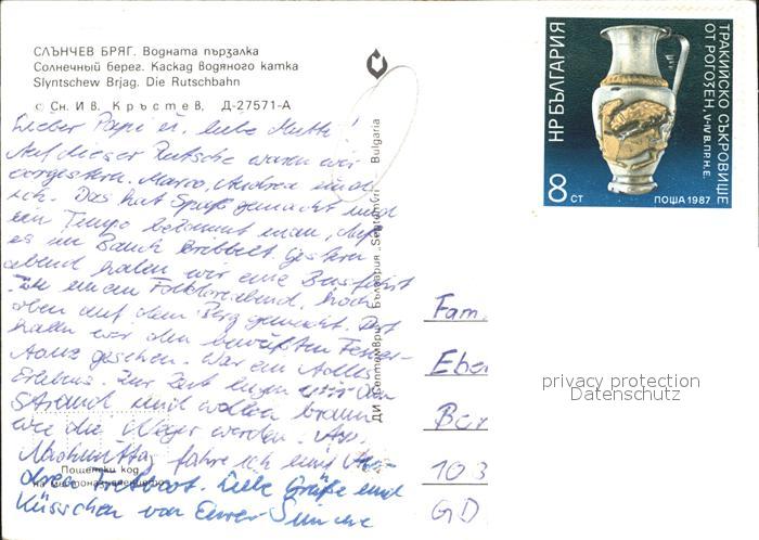 old postcard Bulgarien Schwimmbad Rutschbahn postalisch gelaufen Erhaltung siehe scans