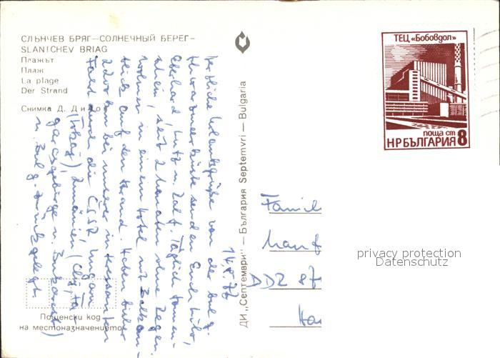 old postcard Bulgarien Slantschev Briag Strand postalisch gelaufen Erhaltung siehe scans