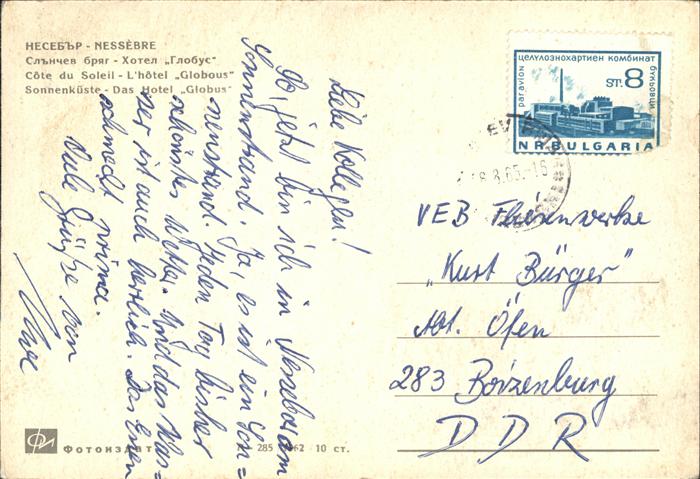 old postcard Bulgarien Sonnenkueste Hotel Globus postalisch gelaufen