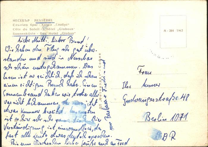 old postcard Bulgarien Sonnenkueste Hotel Globus postalisch gelaufen Erhaltung siehe scans
