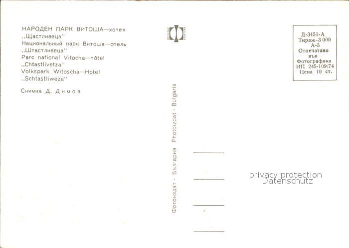 Bulgarien Volkspark Witoscha Hotel Schtastliweza postalisch nicht gelaufen Erhaltung siehe scans