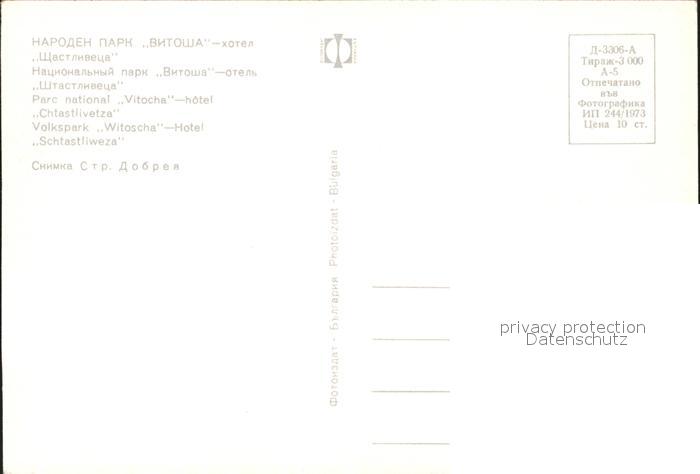 Bulgarien Volkspark Witoscha Hotel Schtastliweza postalisch nicht gelaufen Erhaltung siehe scans