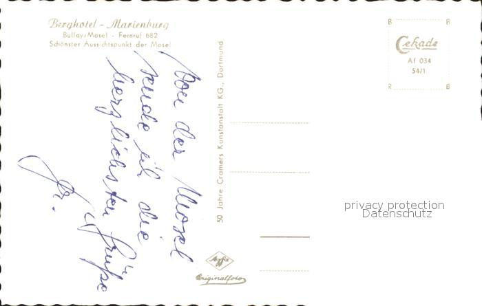 72095586 Bullay Mosel Berghotel Marienburg Blick von der Terrasse postalisch nicht gelaufen Erhaltung siehe scans KatCode: 11110007135019