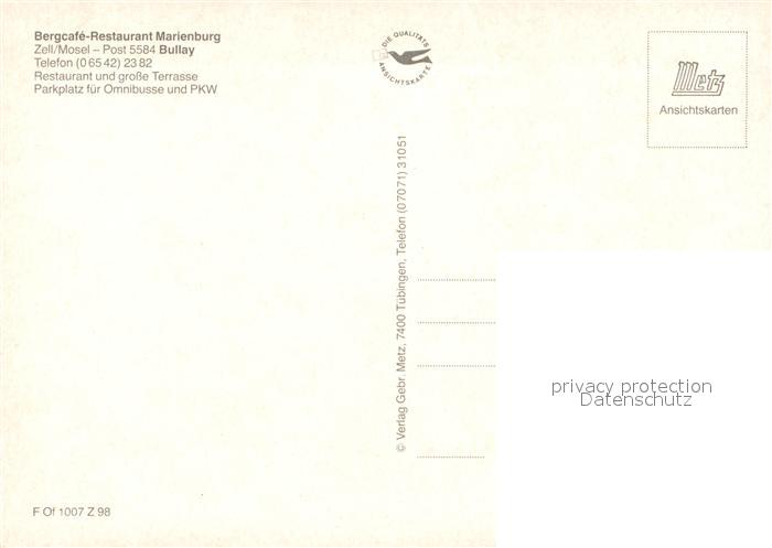 73093602 Bullay Mosel Fliegeraufnahme Bergcafe Marienburg postalisch nicht gelaufen Erhaltung siehe scans [NatalD47] KatCode: 11110007135019