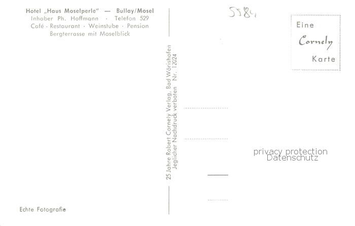 73829593 Bullay Mosel Hotel Haus Moselperle Gaststube Terrasse postalisch nicht gelaufen Erhaltung siehe scans [WerneD78] KatCode: 11110007135019