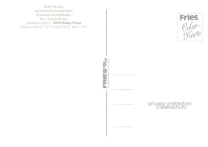 73648144 Bullay Mosel Hotel Mosella Historischer Zehnthaus Gewoelbekeller Blick ins Moseltal postalisch nicht gelaufen Erhaltung siehe scans [FriedD77] KatCode: 11110007135019