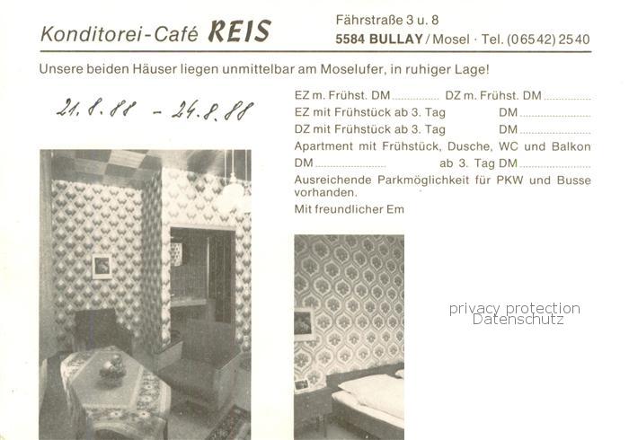 73780306 Bullay Mosel Konditorei Cafe Reis postalisch nicht gelaufen Werbekarte (keine Postkarte) Erhaltung siehe scans [FriedD77] KatCode: 11110007135019