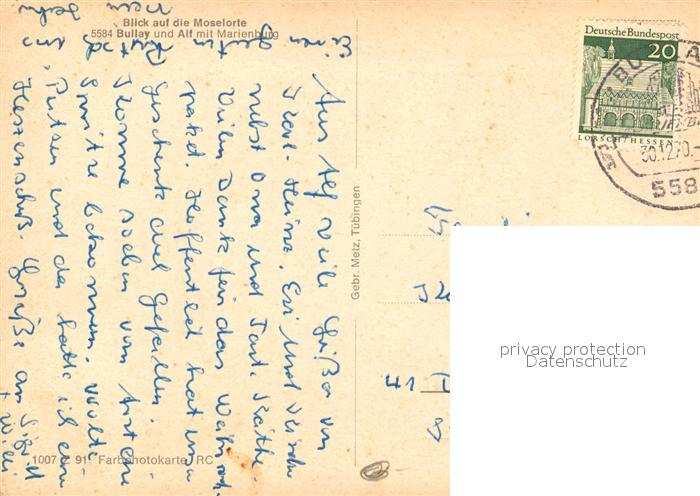 73310206 alte Postkarte Bullay Mosel Weinorte Bullay und Alf mit Marienburg Moseltal postalisch gelaufen Erhaltung siehe scans [FriedD77] KatCode: 11110007135019