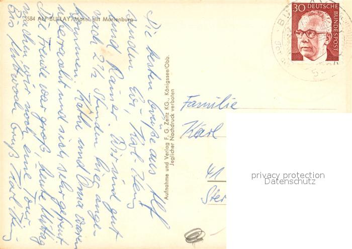 73310207 alte Postkarte Bullay Mosel Weinorte Bullay und Alf mit Marienburg Moseltal postalisch gelaufen Erhaltung siehe scans [FriedD77] KatCode: 11110007135019