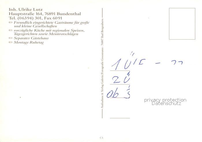 73723584 Bundenthal Gasthaus Pension Zur Krone Restaurant Festsaal Theke postalisch nicht gelaufen Erhaltung siehe scans [FriedD77] KatCode: 11110007340502