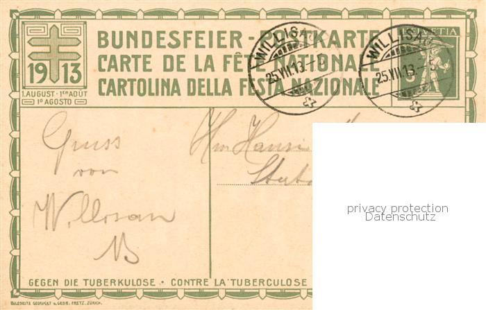 73859919 Bundesfeier Schweiz Das Ruetli gegen die Tuberkulose postalisch gelaufen Erhaltung siehe scans [IrynaD87] alte Postkarte Iryn Katcode 22100000000300