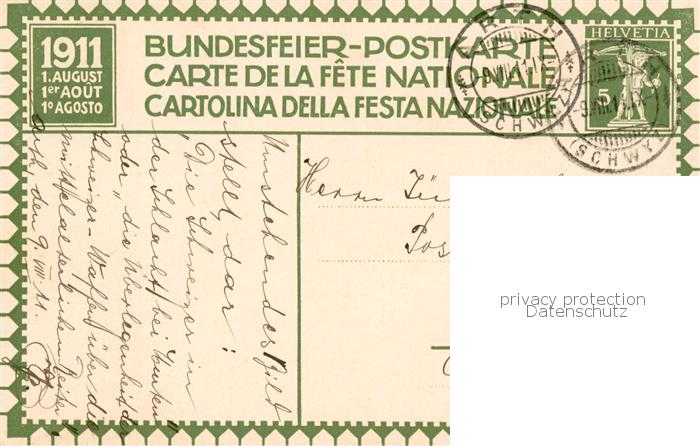 73859688 Bundesfeier Schweiz Graph anstalt J.E. Wolfensberger Zürich postalisch gelaufen Erhaltung siehe scans [IrynaD87] alte Postkarte Iryn Katcode 22100000000300