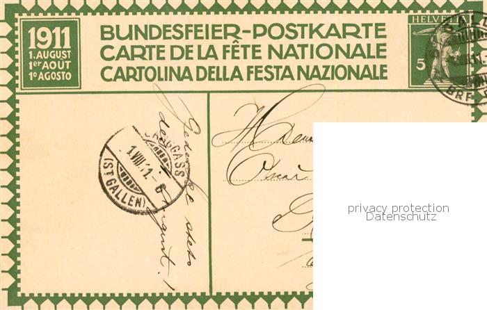 73855930 Bundesfeier Schweiz Graph Anstalt postalisch gelaufen Erhaltung siehe scans [IrynaD87] alte Postkarte Iryn Katcode 22100000000300