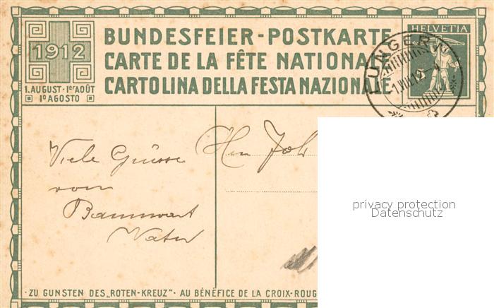 73859907 Bundesfeier Schweiz H.B. Wieland Graph anstalt J.E.Wolfensberger Zuerich Mann Flage postalisch gelaufen Erhaltung siehe scans [IrynaD87] alte Postkarte Iryn Katcode 22100000000300