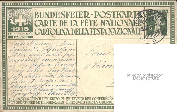 alte Postkarte Bundesfeier Schweiz Helvetia Zoellner postalisch gelaufen Ganzsache (eingedruckte Briefmarke) Erhaltung siehe scans