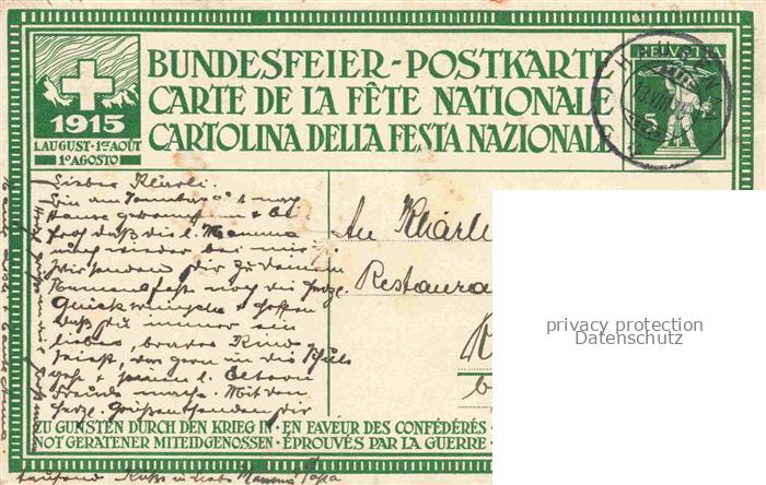 74063448 alte Postkarte Bundesfeier Schweiz Jahrgang: zu Gunsten durch den krieg postalisch gelaufen Erhaltung siehe scans [SanaeD93] KatCode: 22100000000300