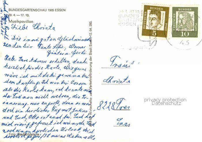 alte Postkarte Bundesgartenschau Essen Musikpavillon postalisch gelaufen Erhaltung siehe scans [PaolaD17]
